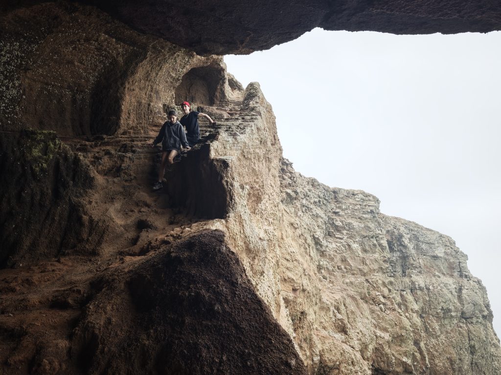 sestup do jeskyně v útesu