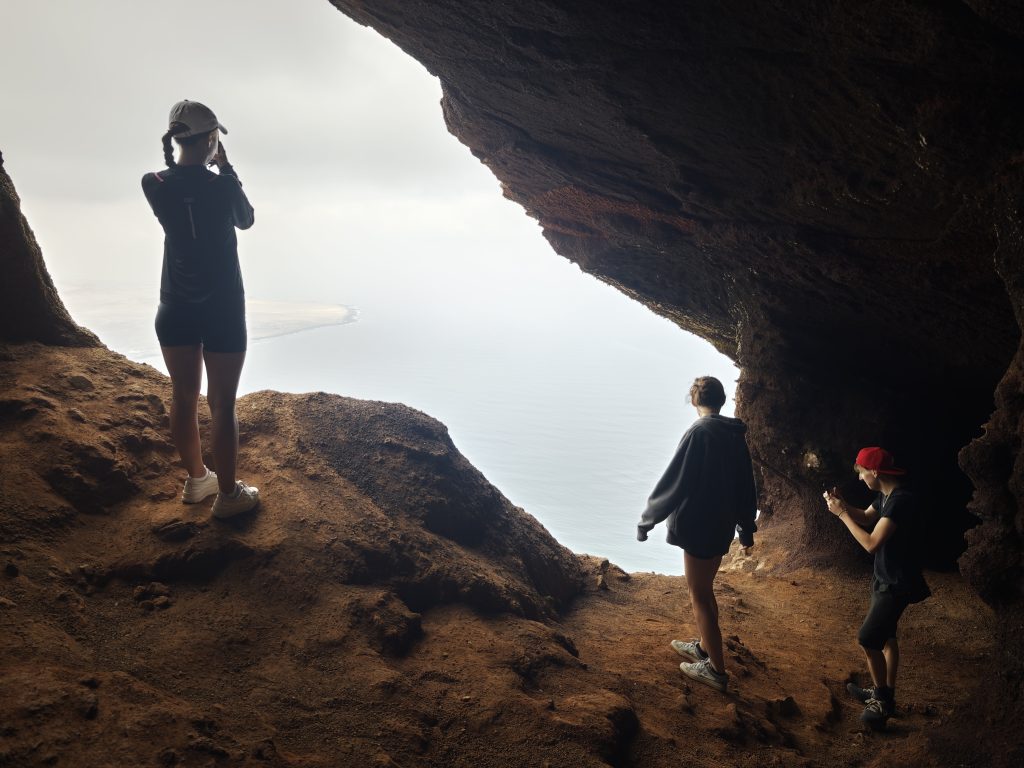 Státní svátek vybízel k prodloužení víkendu, ale příjemné zpáteční letenky do teplých destinací se mi nedařilo nalézt, jen směr na Lanzarote a zpět z GranCanarie a tak mne napadlo hodit oko na trajekt (možnost 1) a na přelet (možnost 2). Akční lowendový přelet horalů s mikrobatohy vyhrál nad trajektem a bylo rozhodnuto. Už jen někde vyhrabat auto pro 6 osob a nějakou ubikaci. Vše se podařilo, ostatně jako vždy. Na brněnském nádraží na nás čekala máma (překvapení), připravená na vodní sporty a příště ji musíme vzít sebou, aby hlídala morálku družstva. Budapešť nás zaskočila státním svátkem, v ulicích ráno člověk nepotkal člověka, prodejny potravin hlásily „zárva“ a skutečně byly zavřené. Pětihodinový let s Ryanair byl zakončen koordinovaným dopadem na lanzarotské letiště, převzetí vozidla lehce drhlo, paní měla vystrašené oči neb objednaná kára nebyla na skladě. Po mnoha telefonátech, patnáctém sorry nám sehnala od jiného pronajímatele mikrobus a mohli jsme tak vyplenit prodejnu potravin a posunout se do naší megaubikace. Jako první cíl průzkumu ostrova byl zvolen výstup na nejvyšší horu Lanzarote, vrchol Peñas del Chache, kopec ozdobený vojenským radarem, dosahující do výšky 674 m n.m. Cestou na vrchol dne jsme navštívili útesovou jeskyni Cueva de Las Cabras, zdolali bezejmenný vrchol s výškou 634 m n.m. a otevřeli vrcholové pivo na kopci El Castillejo 625 m.n.m. aka Malý hrad (patrně druhý nejvyšší vrchol Lanzarote, který má v mapách název). Zdolávačku kopce Peñas Chache (v překladu „Nejvyšší skály“) jsme zakončili jeho obkroužením a krátkou zastávkou u brány do vojenského areálu. Oslava zdolání nejvyššího kopce Lanzarote proběhla ve vlnách Atlantského oceánu, teplota příjemná, vlny nenechavé až masážní. Večerní průzkum hlavního města Arrecife nebyl završen nákupem zmrzliny a to se musí napravit (třeba na ostrově GranCanaria).