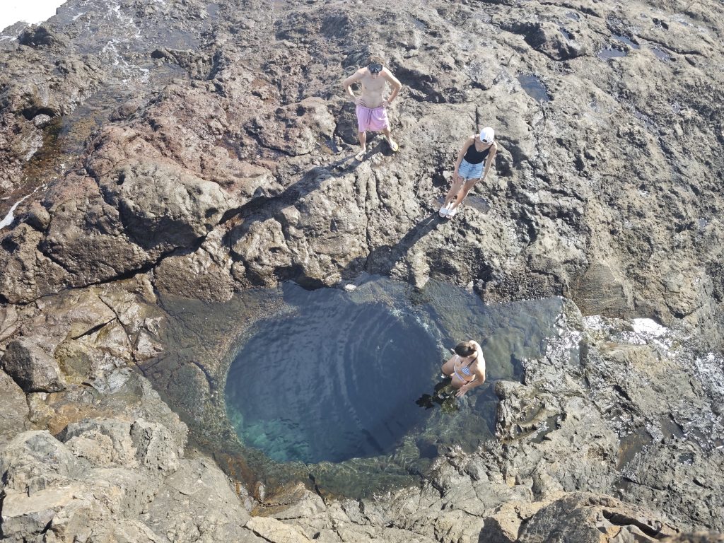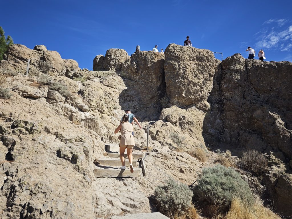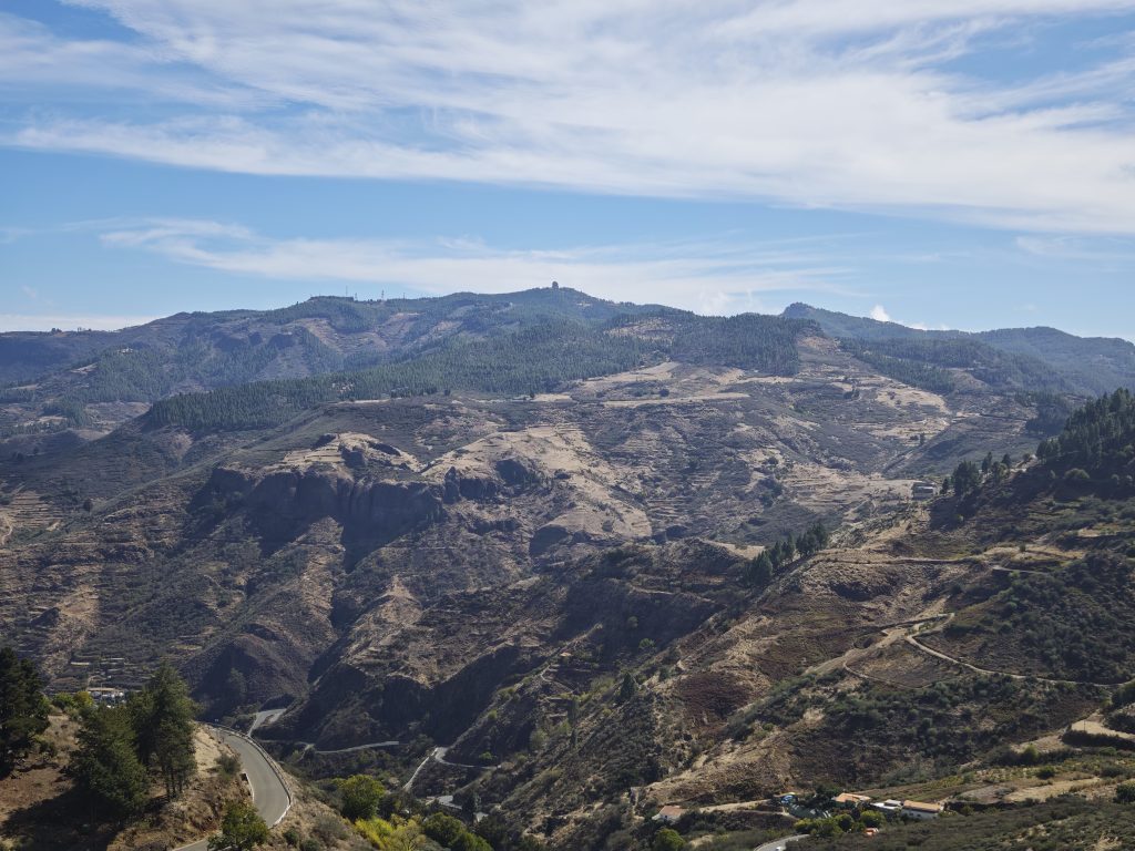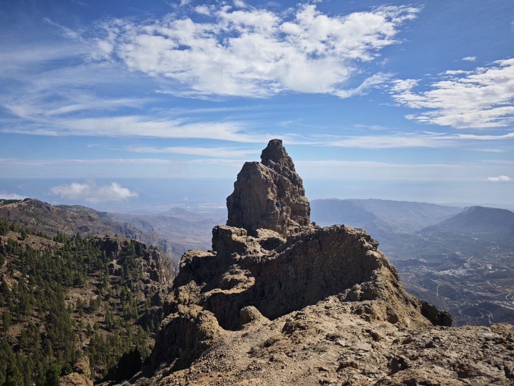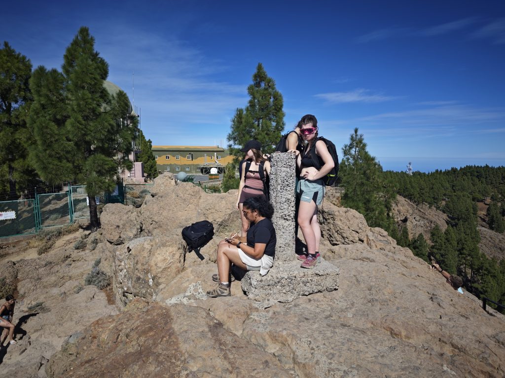 Nejvyšším bodem ostrova je skalisko Morrón de la Agujereada s výškou 1 956 m n. m., ale pro zdolání je. třeba mít sebou lano a nebo být Adam Ondra. S námi byl jen Adam A. a Ondra H., což na výšplh na skalisko nestačí. Ve většině zdrojů je uváděn jako nejvyšší kopec Gran Canarie vrchol Pico de las Nieves (v překladu Sněžná hora), který se nachází cca 120m od skaliska MdlA. Kopec Pico de las Nieves zdolá každý, který se umí vyhrabat z parkoviště přes přibližně třicet schodů. Kdo to neumí, zůstane na parkovišti a vyplení pojízdnou prodejnu nápojů a pochutin. My jsme velcí sportovci a tak celá šestice dosáhla vrcholu, na ostrov jsme se dívali z nadmořské výšky 1949. Vrcholový betonový patník si bez lidí jen tak nevyfotíte, neboť na tento typ kopce se dostane kdejaký materiál a mnohým nedochází, že by mohli posedět o pár metrů vedle (zlaté Fuji). Vrcholové pivo jsme zvládli vypít jíž na pobřežní neb platí známé kanárské pořekadlo „lepší studené pivo na pláži, než teplé pivo na Pico de las Nieves“.