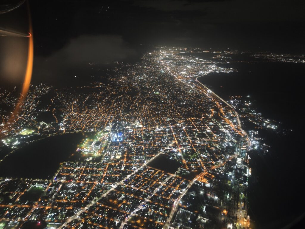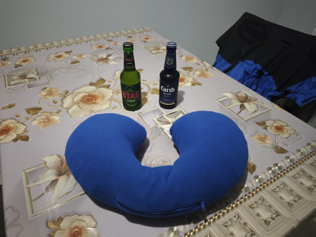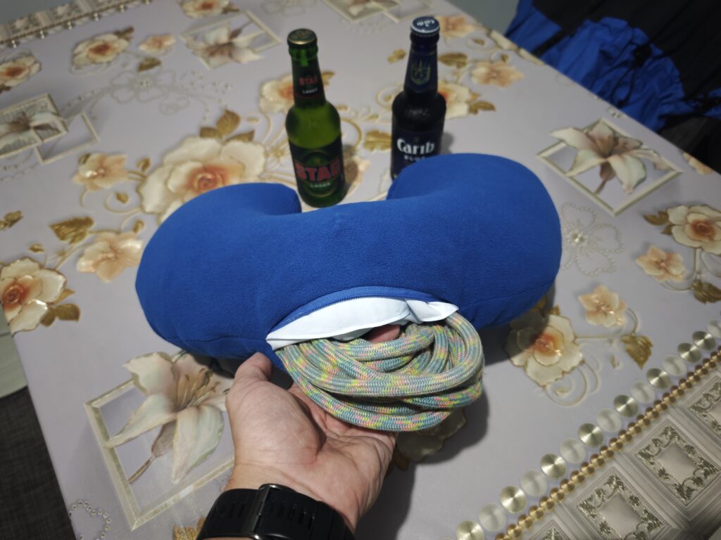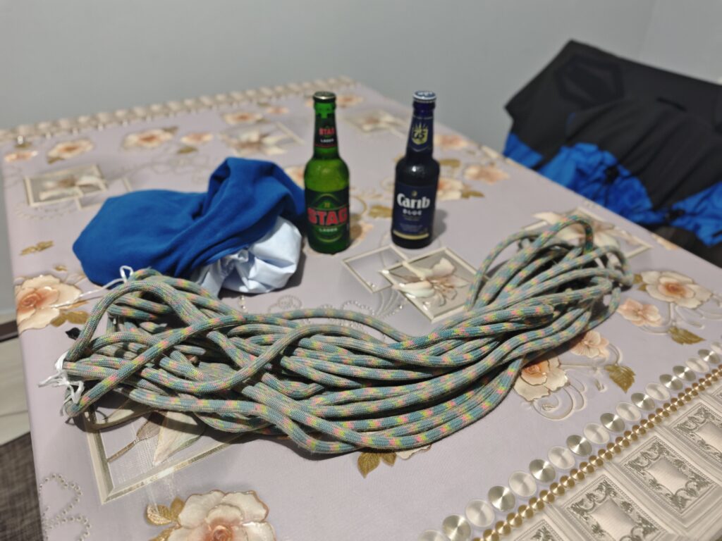 Pár dní před odletem jsem dojedl vynikající bramborák s masem (stáří 2,5dne), večer to zazdil tunou česneku v tataráku a přivodil si tak nadpozemský žlučníkový záchvat, při kterém mne opouštěly tekutiny horem i dolem po dobu asi 10h. Nebyl jsem si jist, zda se dokáži opravit a už se pomalu smiřoval i s variantou, že spočítám ztráty. Jedl jsem jen rohlíky, pil vodu nebo čaj a toto utrpení se mi začalo dokonce líbit. Nakonec jsem se dostal do stavu „s komplikacemi žijící“ a v mrazivé Vídni jsem vlezl do letadla s pruhy (letadla Condor jsou známá svým pruhováním různých barev). Bleskový přestup ve Frankfurtu byl oživením a na další cestě jsem držel krabičkovou dietu nebo spal. Ke spánku jsem využíval krční límec, která jsem si musel upravit a tato finta mi umožnila sebou do letadla propašovat lano, které možná budu potřebovat na Grenadě (více foto dole). Mraky na Tobagem hrozily, ale počasí se mění každým dnem a já při studiu počasí zjistil, že mne nečekají ideální podmínky, ale v dalších dnech to nebude lepší. Při vstupní procedůře na letišti jsem musel vysvětlit moje plány a úřednice měla oči jak tenisáky – zdolání vrcholů, tři ostrovy, za týden ??? Po vstupu do TT jsem se posunul o pár metrů vedle a vyčkal na svůj „vnitrostátní“ let na Trinidad, který stojí 30USD a trvá cca 20-25minut. Po příletu převzetí vozu, akční cesta tmou na ubytování s krátkým nákupem vody, 2ks piva a základních potravin na snídani, neboť následující den jsem se chtěl pokusit o výstup na nejvyšší horu Trinidadu.