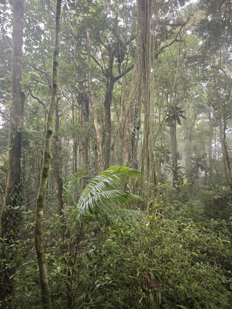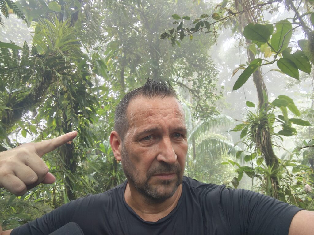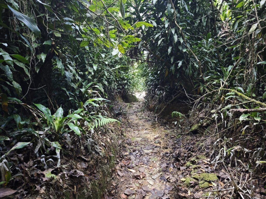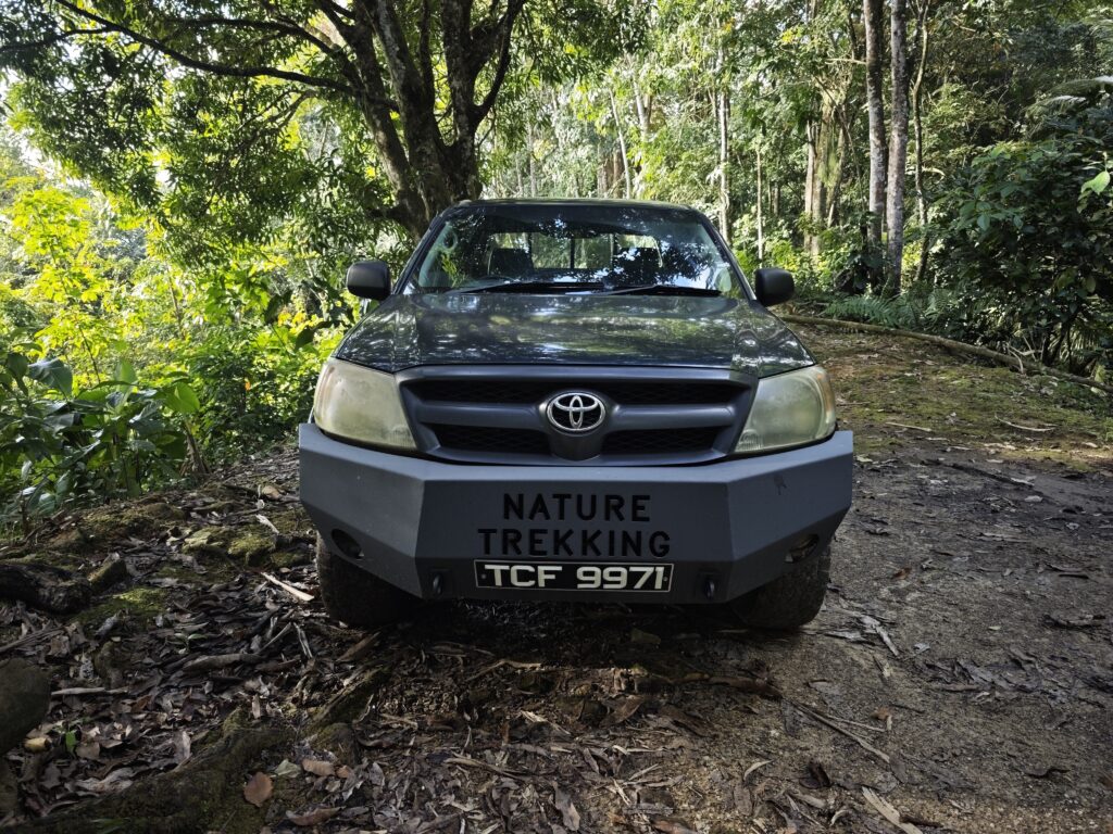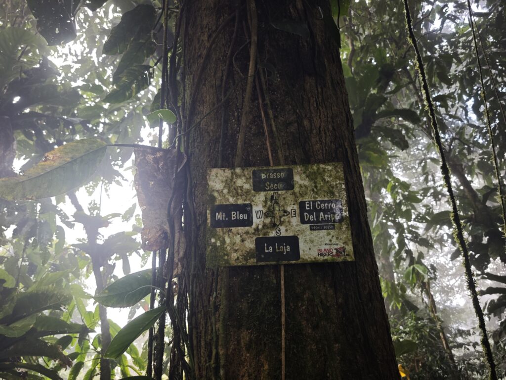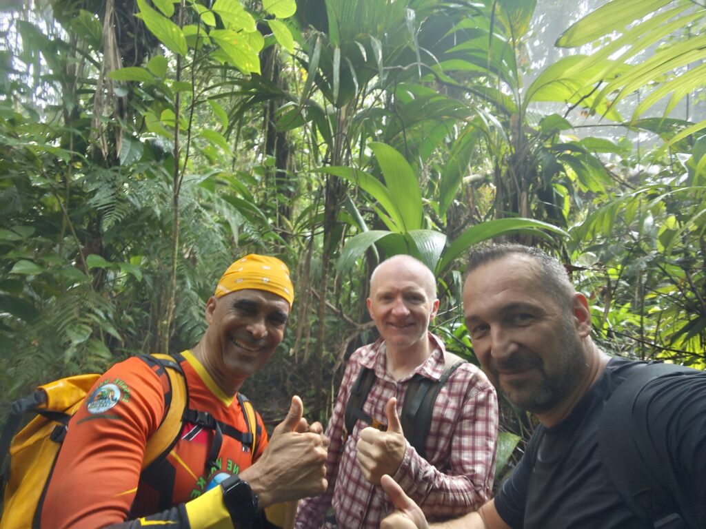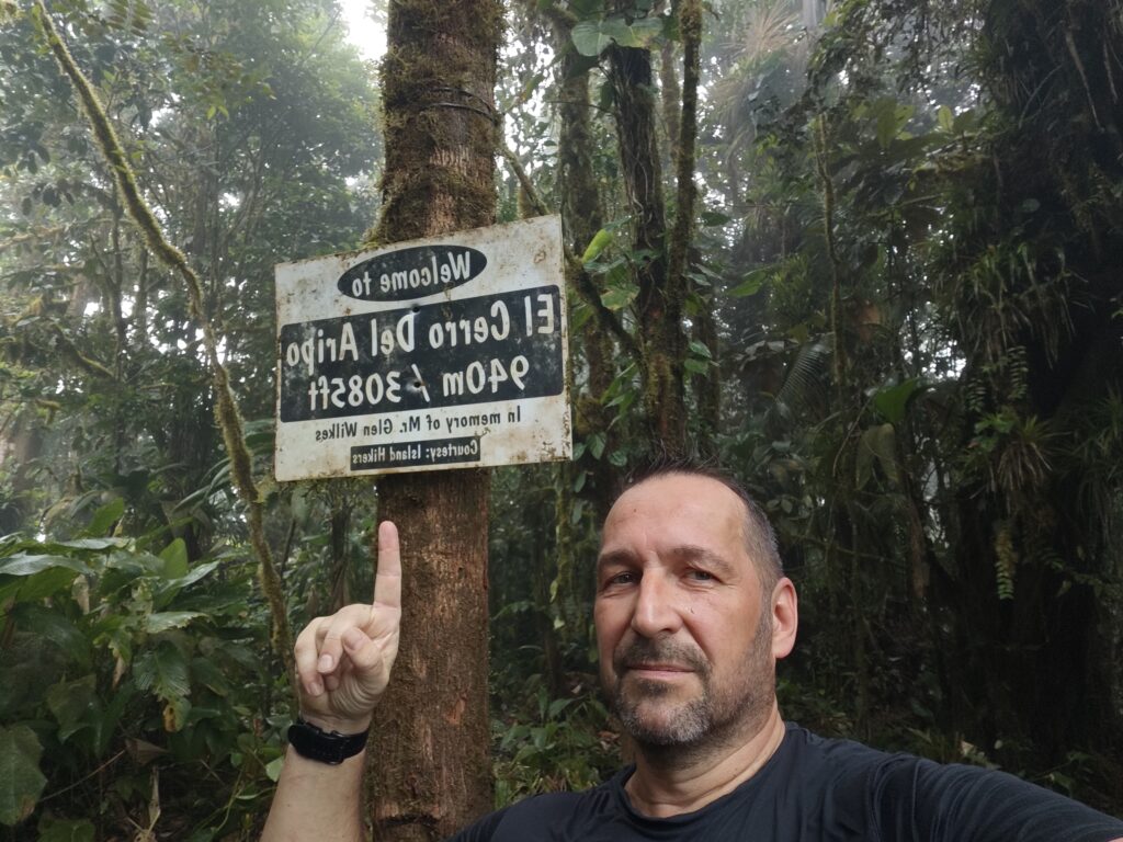 Nejvyšší hora Republiky Trinidad a Tobago se nachází nad letištěm Piarco a tak jsem nemusel cestovat přes celý ostrov. Bohužel jsem použil k navigaci mapy.cz a tak než jsem opustil město, tak jsem zažil malé uličky, klikatil se a dával přednosti každou minutu. Na peakbagger jsem si nastudoval obvyklou výstupovou trasu předchozích turistů, ale více se mi líbila alternativní trasa, která vede přes Lalaja road. Po této cestě jsem jel do kopce co to šlo a naštěstí nepřekročil magickou hranici za kterou by již nebylo návratu. Musel jsem jít o několik kilometrů navíc, být připraven k boji se psími nemazlíčky, ale ona i ta cesta na to místa kam jsem se dostal je rozhodně vhodná pro vůz 4×4 (rozhodně doporučuji). Na místě, kam jsem si původně myslel že dojedu parkoval terénní vůz Nature Trekking a tak jsem tušil, že na kopec se někdo vypravil přede mnou. Cesta až na kopec je velmi dobře značená a v horních partiích velmi kluzká, což je nebezpečné v pár místech kde se sejde strmý svah a bláto a zde je nutné se držet kořenů, větví a počítat s tím, že pojedete skluzem. Pod vrcholem jsem potkal živá lidská stvoření, popovídali jsme si o našem společném hobby – zdolávání nejvyšších hor zemí světa. Milé setkání „na konci světa“ s člověkem, který již překonal magickou 100. Z vrcholu nic hezkého neuvidíte, kopec je zarostlý a i po cestě z kopce se téměř nevyskytují místa s výhledem. Na vrcholu jsem nabral sil, přežil několik vln deště a užil si chvíli klidu ve výšce 940-941. Cesta zpět se stávala po dešti horší, mokro mi nevadilo a ocenil jsem, že jsem se na výstup vydal v koupacích trenkách a jen mi začal vadit nedostatek vody (příště si nechám lahev vody v káře nebo na cestě). Jízda z kopce dolů byla adrenalinová a já se zpětně divil, že ty hrůzy do kopce jsem zvládl v Suzuki Fronx bez 4WD. Po příjezdu na ubytování jsem dal sprchu, šel se odměnit do nedalekého street food restaurantu a poté začala očista a sušení oblečení a obuvi. Boty prožívají klinickou smrt a je jisté, že se mnou zpět nepojedou.