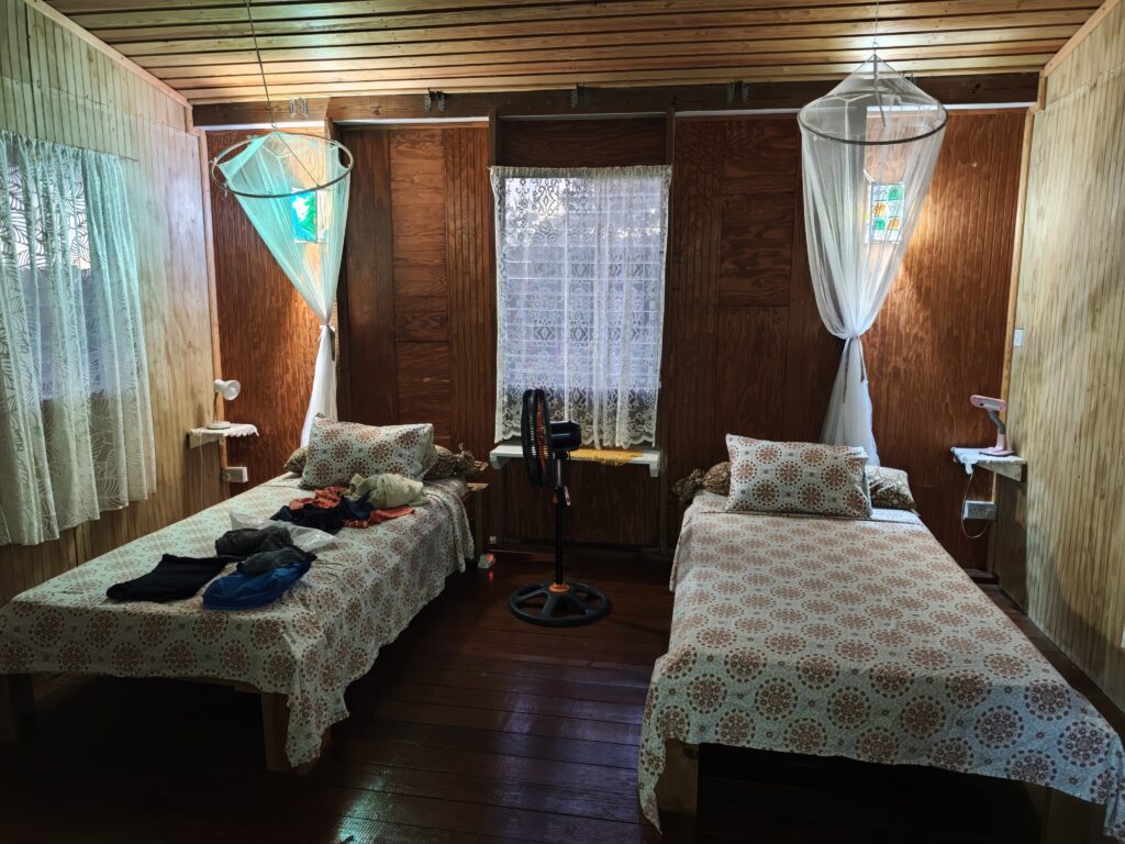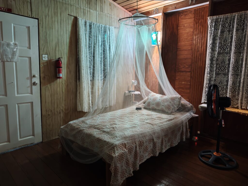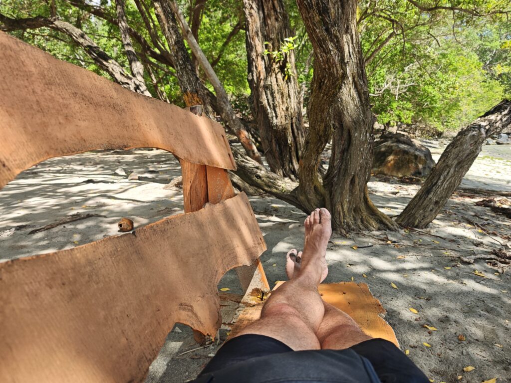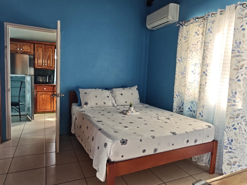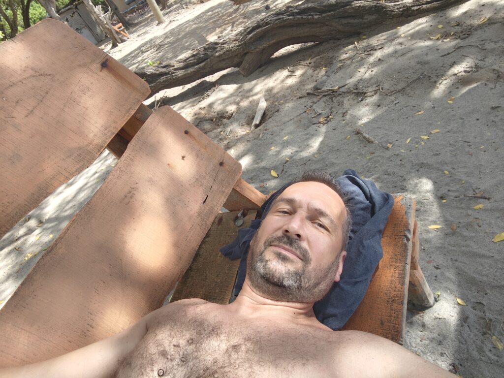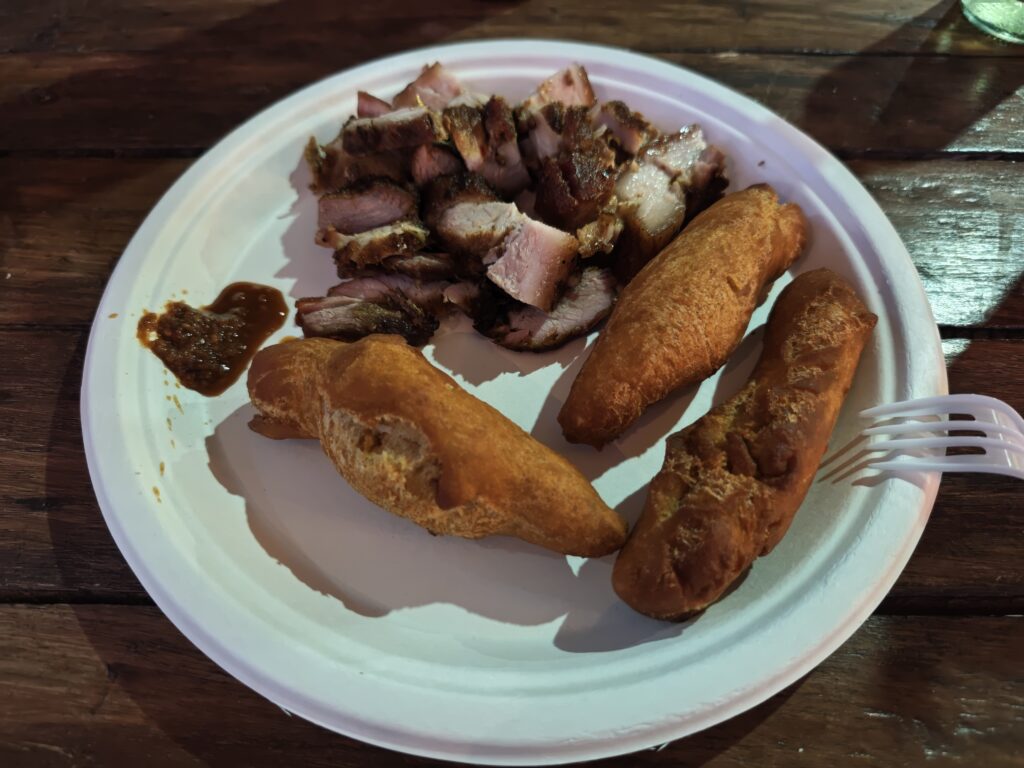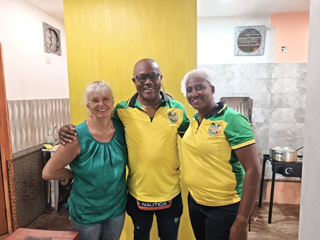 Na poslední noc jsem se přesunul blízko letiště, neboť jsem nechtěl riskovat jízdu za tmy nebo ranní zácpy. Ubytoval jsem se relativně blízko vyhlášené pláže Grand Anse Beach a z apartmánů pana Finche jsem si udělal udržovací procházku na pláž. Chtěl jsem si dát místní specialitu „roti“, ale dva pokusy nevyšly neb buď měli v sobotu zavřeno a nebo měli jen kuře s rýží. Na pláži jsem sledoval místní hráče pingpongu, poradil jim co dělají špatně, dal si jeden místní rum a před setměním jsem se pokusil ulovit něco k jídlu. Nakonec jsem po cestě do apartmánu našel kubánskou pouliční restauraci Little Havana a tak jsem tam zamířil. Vývěsní štít jsem našel, ale obsluha přiznala, že restauraci převzali a nabízejí jamajská jídla. Majitelka pocházela z Austrálie, ostatní personál z jamajky a to vše na ostrově Grenada. Dal jsem si nakládané vepřové maso a jamajskou specialitu s názvem festivals.